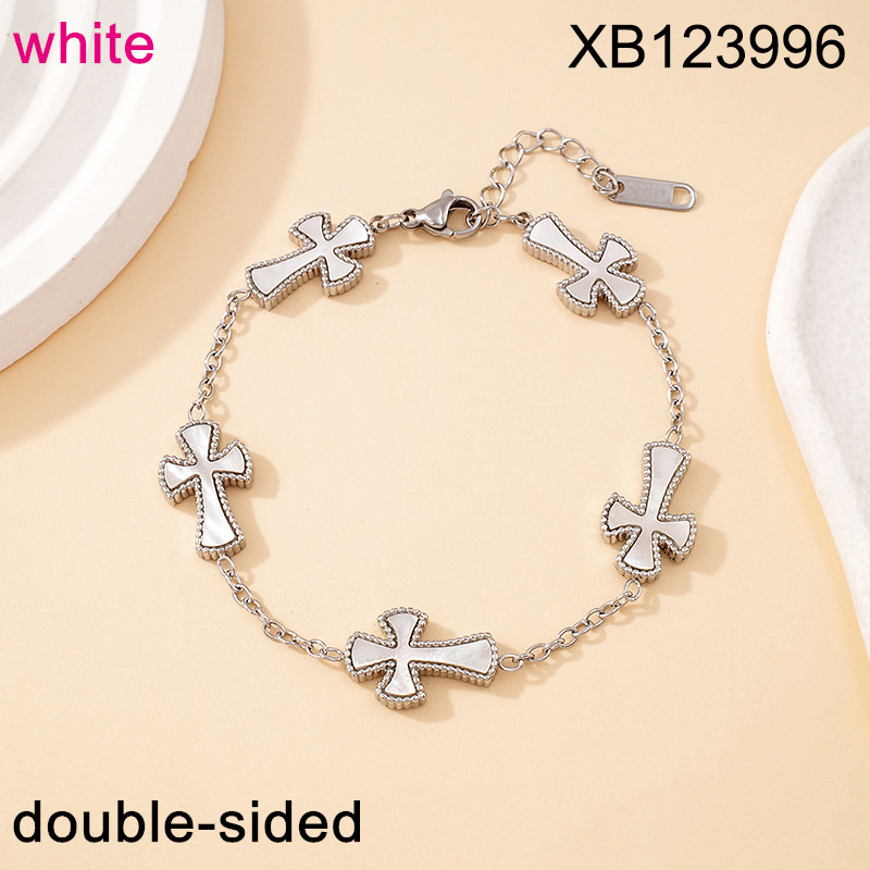 Level B Stainless Steel New Trendy Women Jewelry White Cowrie Cross Steel color Bracelet