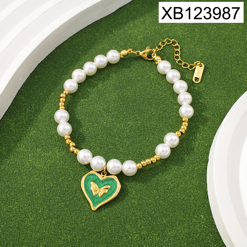 Level B Stainless Steel New Trendy Women Jewelry Pearl Style/Plastic Beads Heart Golden Bracelet