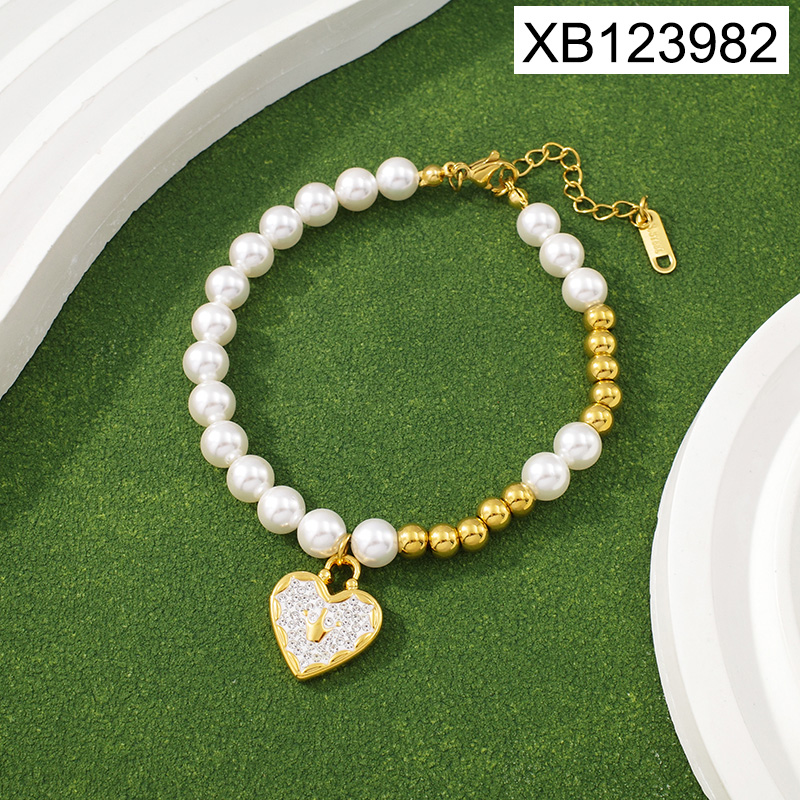 Level B Stainless Steel New Trendy Women Jewelry Pearl Style/Plastic Beads Heart Golden Bracelet