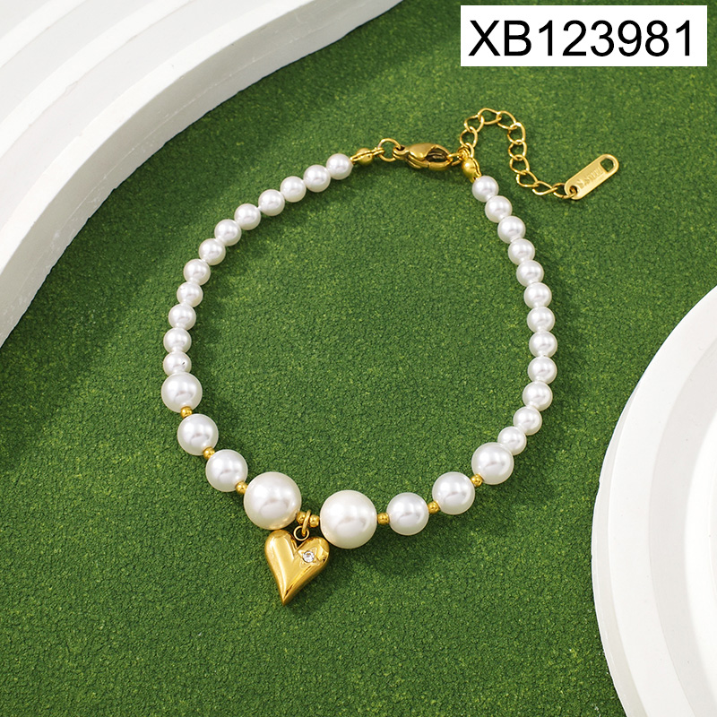Level B Stainless Steel New Trendy Women Jewelry Pearl Style/Plastic Beads Heart Golden Bracelet