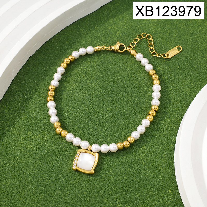Home > Level B Stainless Steel New Trendy Women Jewelry Pearl Style/Plastic Beads Square Golden Bracelet
