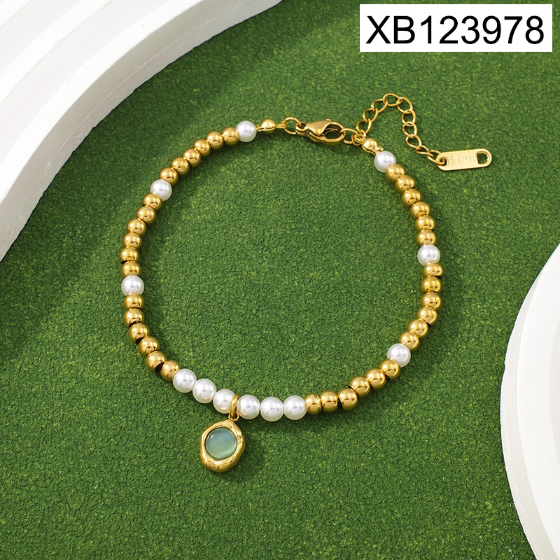 Level B Stainless Steel New Trendy Women Jewelry Pearl Style/Plastic Beads Golden Bracelet