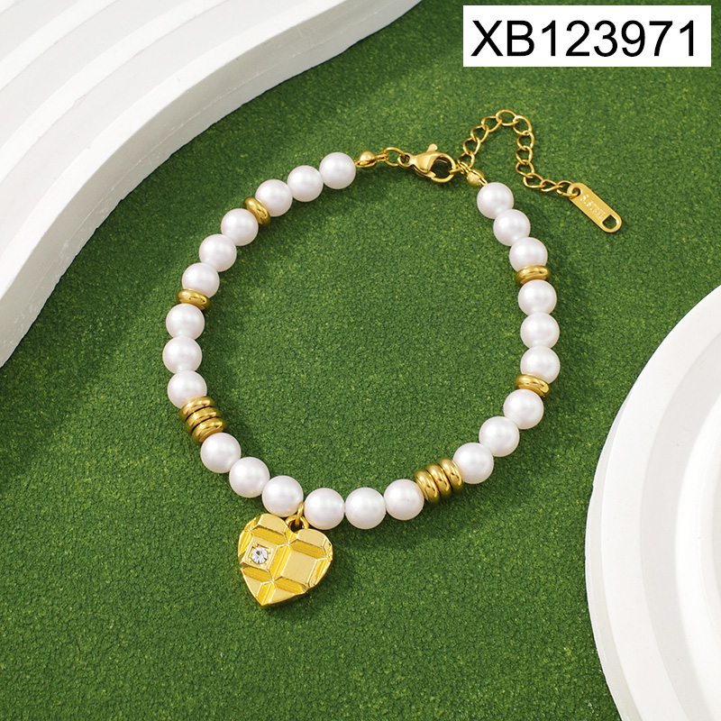 Home > Level B Stainless Steel New Trendy Women Jewelry Pearl Style/Plastic Beads Heart Golden Bracelet