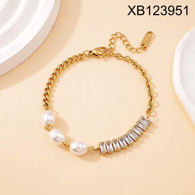 Level B Stainless Steel New Trendy Women Jewelry Pearl Style/Plastic Beads Golden Bracelet