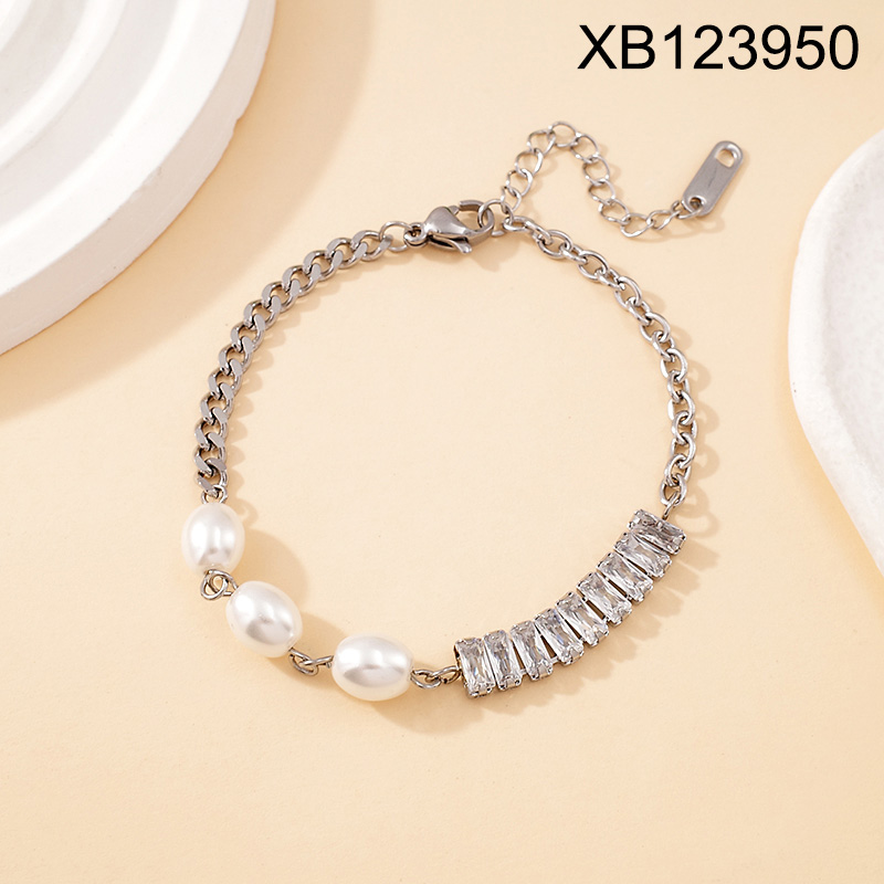 Level B Stainless Steel New Trendy Women Jewelry Pearl Style/Plastic Beads Steel color Bracelet
