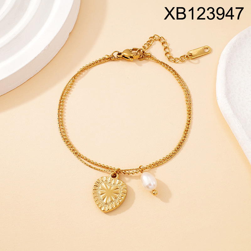 Level B Stainless Steel New Trendy Women Jewelry Pearl Style/Plastic Beads Heart Golden Bracelet