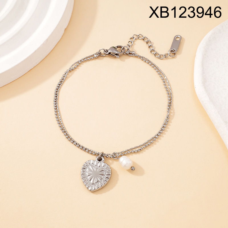 Level B Stainless Steel New Trendy Women Jewelry Pearl Style/Plastic Beads Heart Steel color Bracelet
