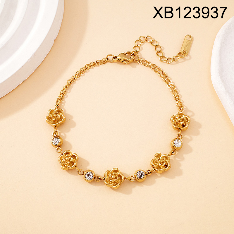 Level B Stainless Steel New Trendy Women Jewelry Flower Golden Bracelet