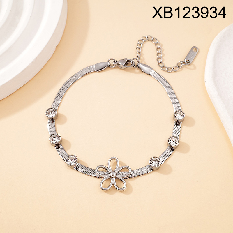 Level B Stainless Steel New Trendy Women Jewelry Flower Steel color Bracelet