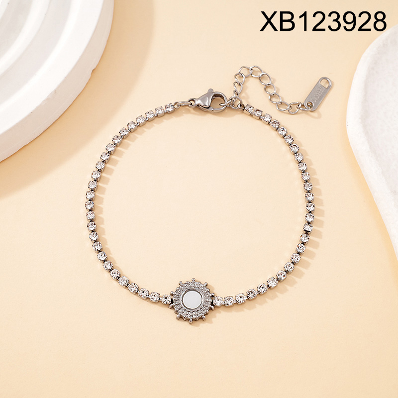 Home > Level B Stainless Steel New Trendy Women Jewelry White Rhinestone Flower Steel color Bracelet