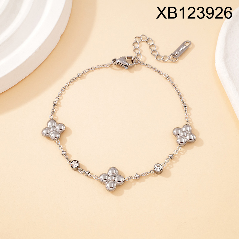 Level B Stainless Steel New Trendy Women Jewelry Flower Steel color Bracelet