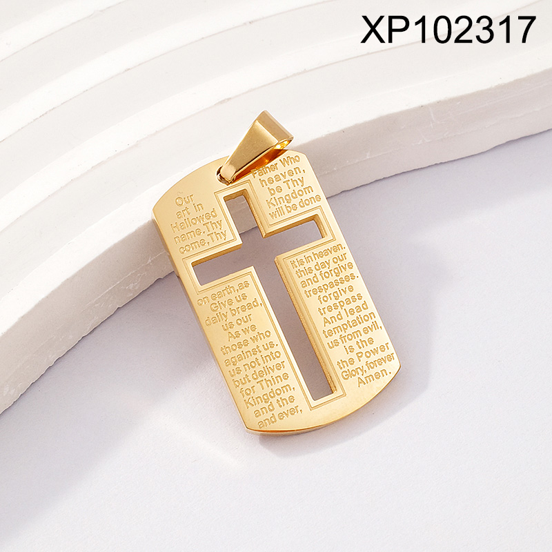 Level B Stainless Steel New Trendy Man Jewelry Cross Scriptures Golden Pendant
