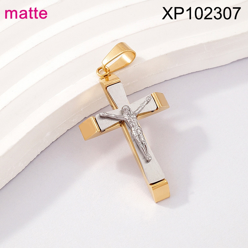 Level B Stainless Steel New Trendy Man Jewelry Cross Jesus Two Tone Matte Pendant