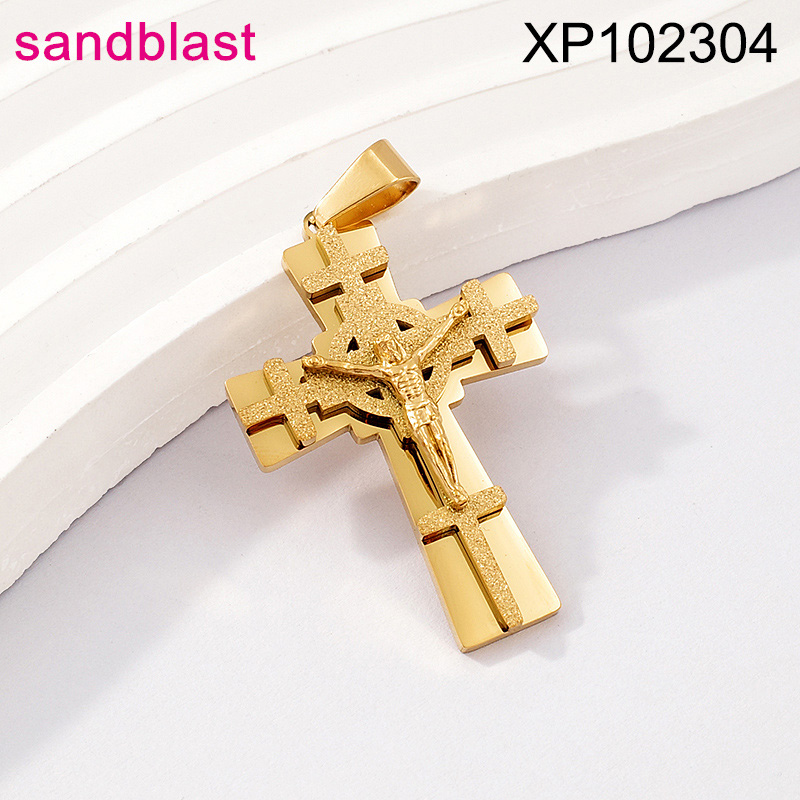 Level B Stainless Steel New Trendy Man Jewelry Cross Jesus Golden Sandblast Pendant