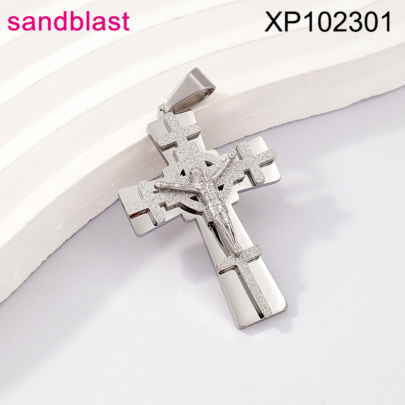 Level B Stainless Steel New Trendy Man Jewelry Cross Jesus Steel color Sandblast Pendant