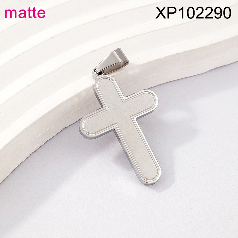 Level B Stainless Steel New Trendy Man Jewelry Cross Steel color Matte Pendant