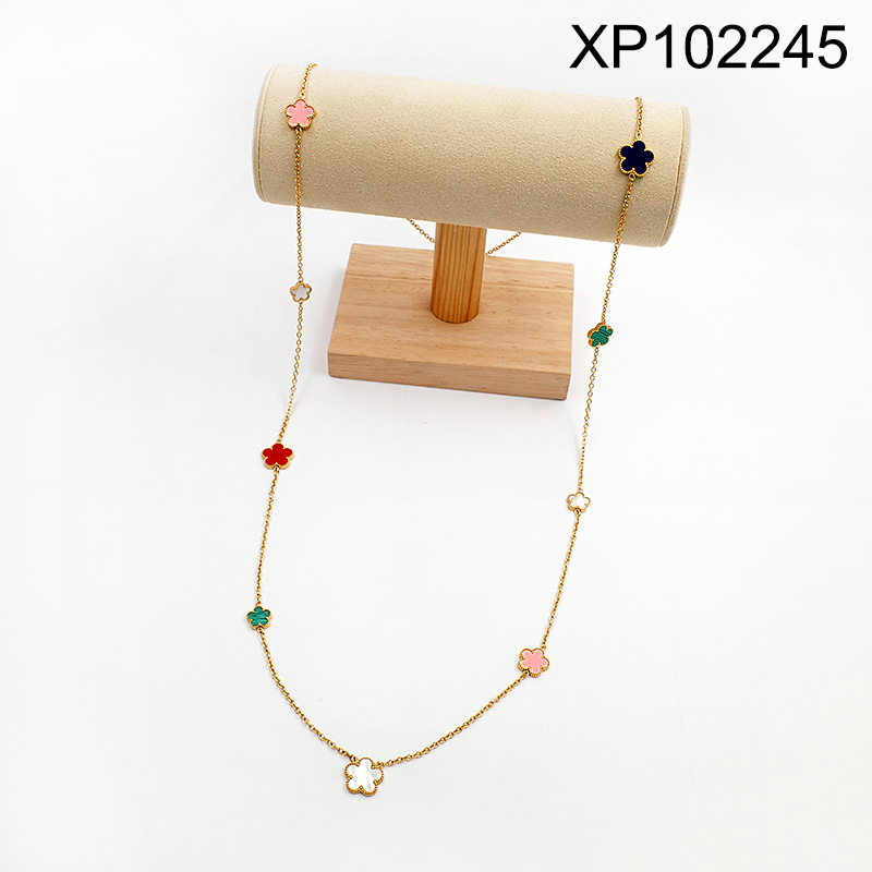 Home > Level A Stainless Steel New Trendy Women Jewelry Flower Golden Sweater Chain Pendant