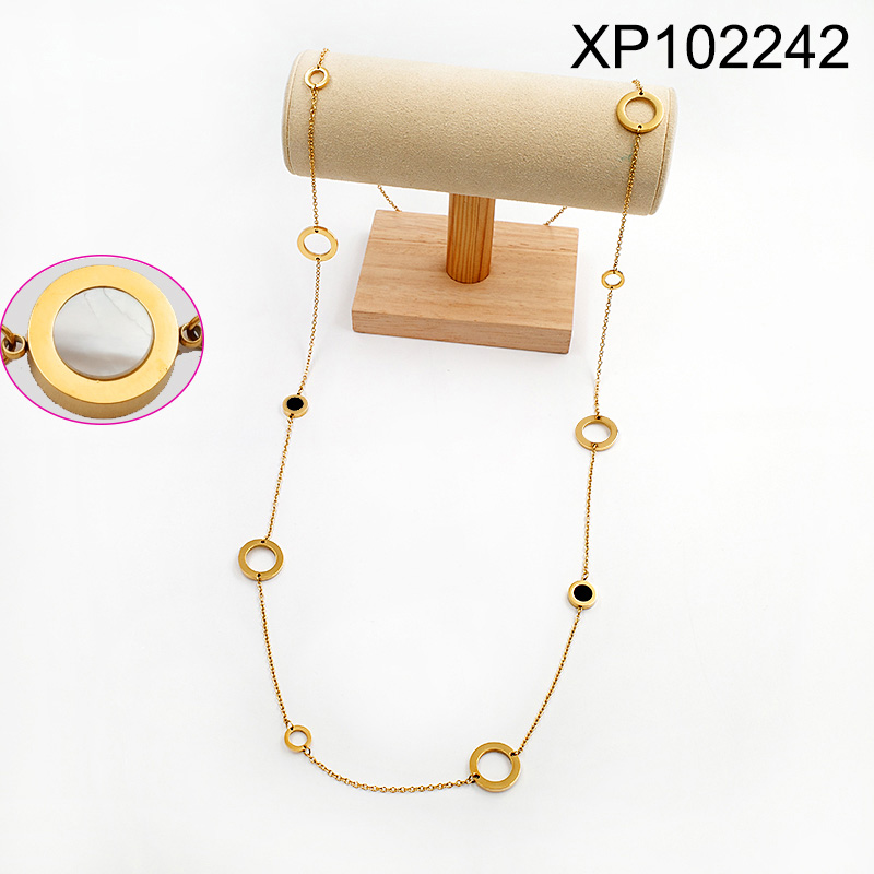 Home > Level A Stainless Steel New Trendy Women Jewelry Round Golden Sweater Chain Pendant