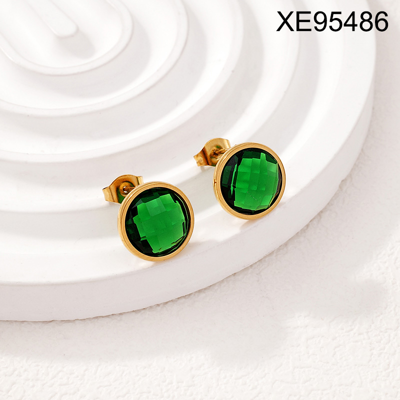 Level A Stainless Steel New Trendy Women Jewelry Green Glass Round Golden Earrings