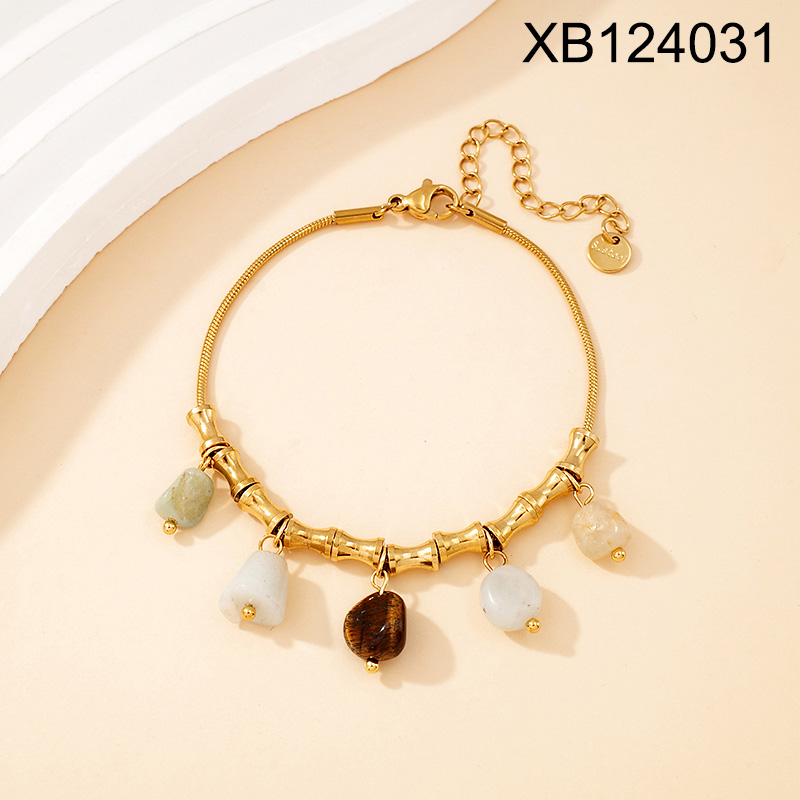 Home > Level B Stainless Steel New Trendy Women Jewelry Natural Stone Golden Bracelet