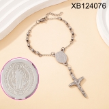 Level B Stainless Steel New Trendy Women Jewelry Bead Chain Religion Cross Golden Necklace