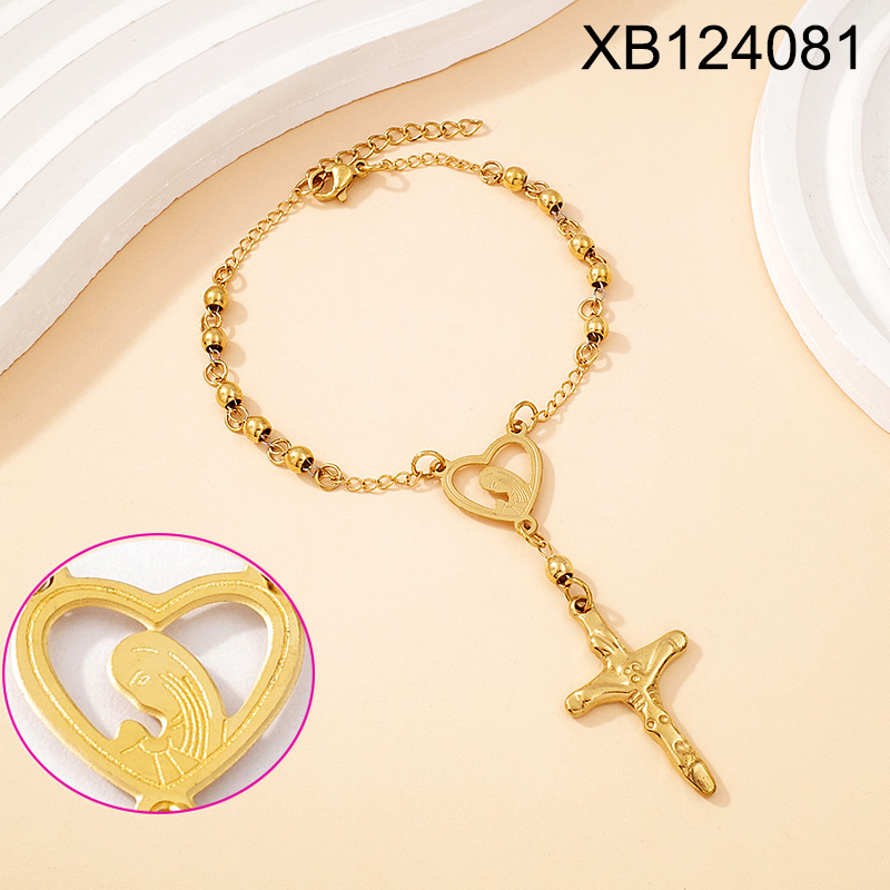 Level B Stainless Steel New Trendy Women Jewelry Bead Chain Religion Cross Golden Bracelet