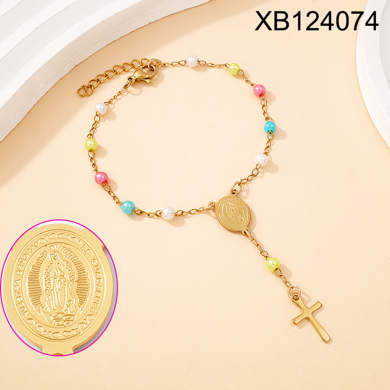 Home > Level B Stainless Steel New Trendy Women Jewelry Drip Oil/Enamel Bead Chain Religion Cross Golden Bracelet