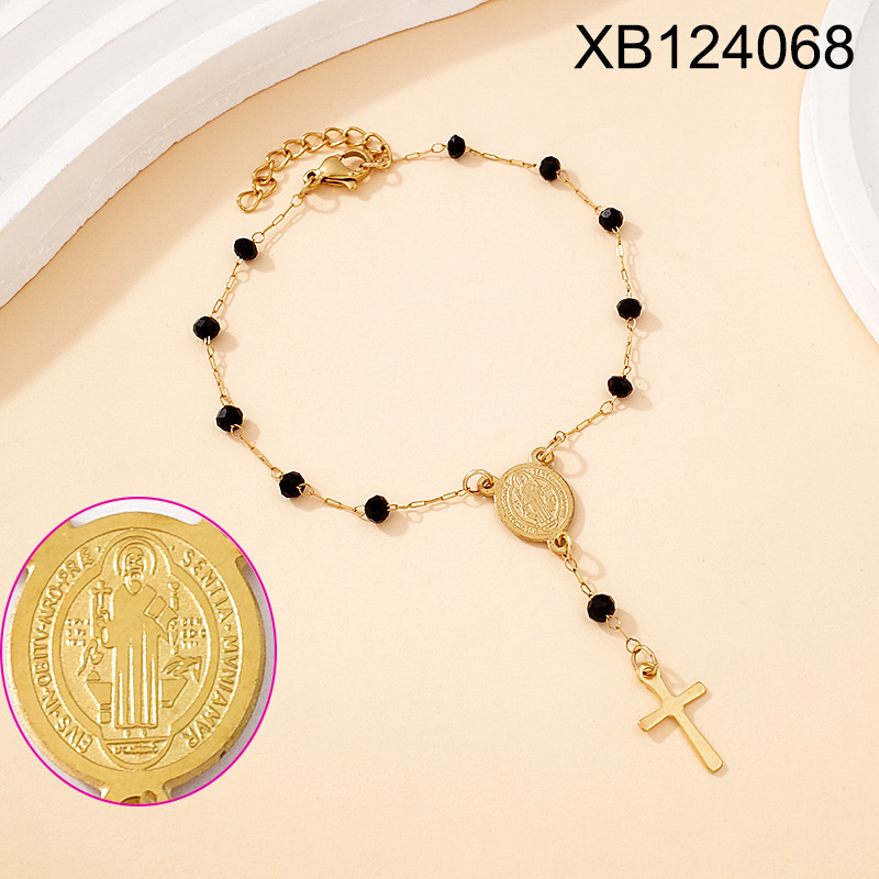 Home > Level B Stainless Steel New Trendy Women Jewelry Drip Oil/Enamel Bead Chain Religion Cross Golden Bracelet