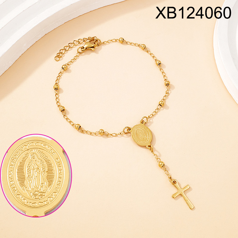 Level B Stainless Steel New Trendy Women Jewelry Bead Chain Religion Cross Golden Bracelet