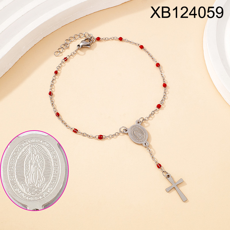 Level B Stainless Steel New Trendy Women Jewelry Bead Chain Religion Cross Steel color Bracelet