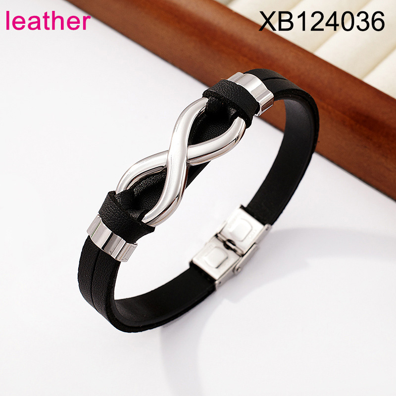 Level B Stainless Steel New Trendy Man Jewelry Lnfinity Jewelry/Number Eight Leather Steel color Bracelet