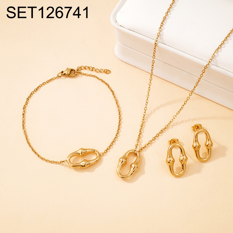 Level B Stainless Steel New Trendy Women Jewelry Oval Golden 3pcs SET