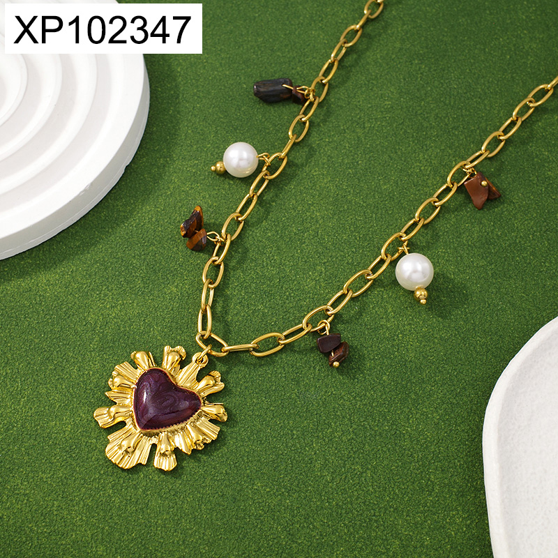 Level B Stainless Steel New Trendy Women Jewelry Pearl Style/Plastic Beads Heart Golden Valentine's Day Pendant