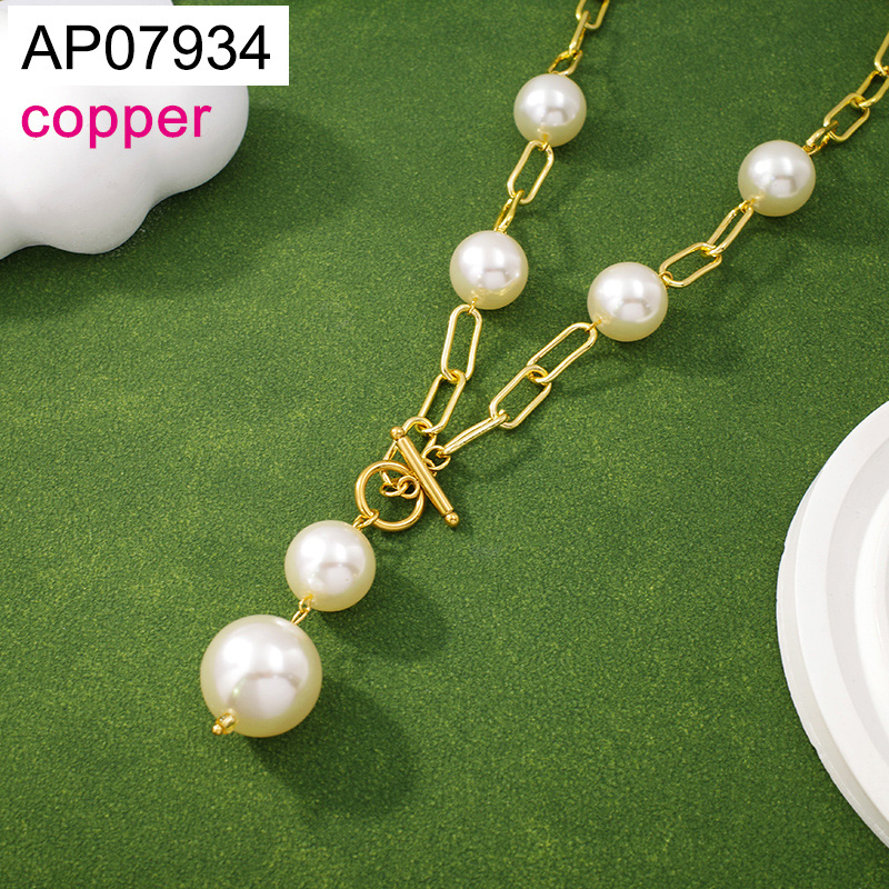 Home > Level B Fashion Jewelry New Trendy Women Jewelry Pearl Style/Plastic Beads Golden Pendant;Material:copper (cobre)