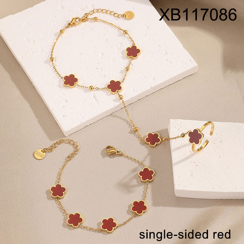 Level B Stainless Steel Jewelry New Trendy single-sided Red Flower Golden Bracelet