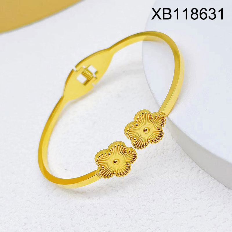 Level B Stainless Steel New Trendy Women Jewelry Flower Golden Bangle