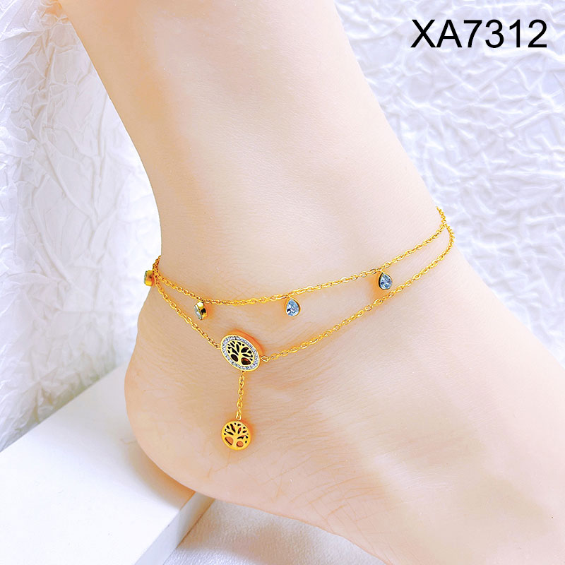 Home > Level B Stainless Steel Jewelry New Trendy Two Layers Chain Tree Golden Anklet
