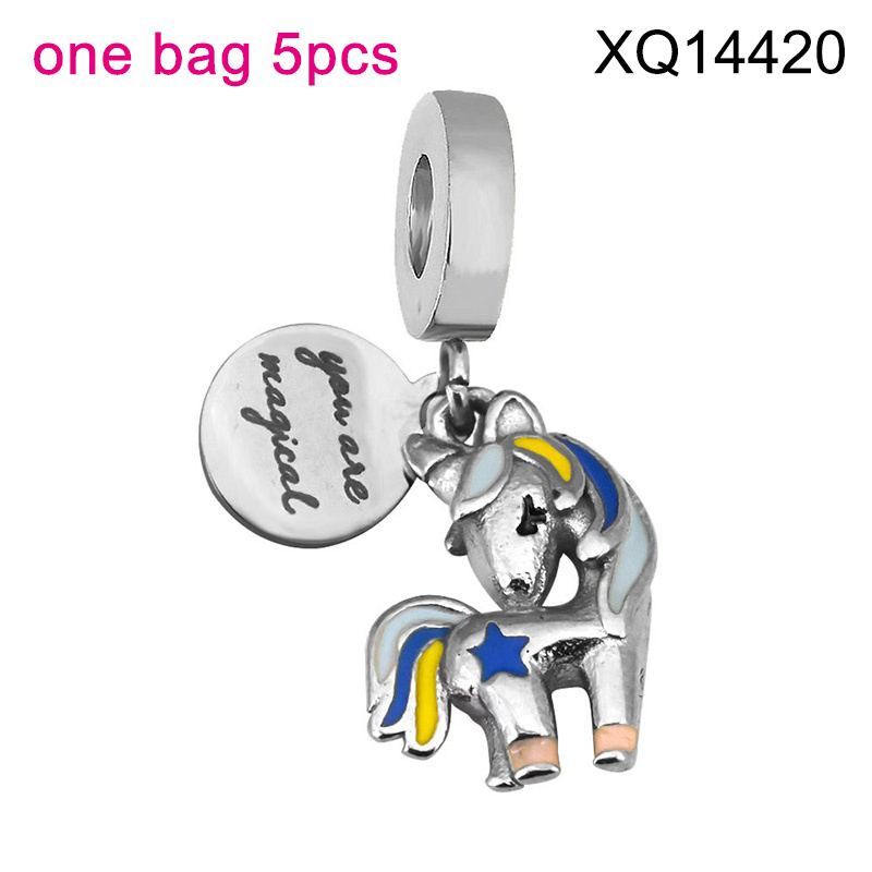 Level B Stainless Steel New Trendy Jewelry Drip Oil/Enamel Unicorn Steel color DIY Charms
