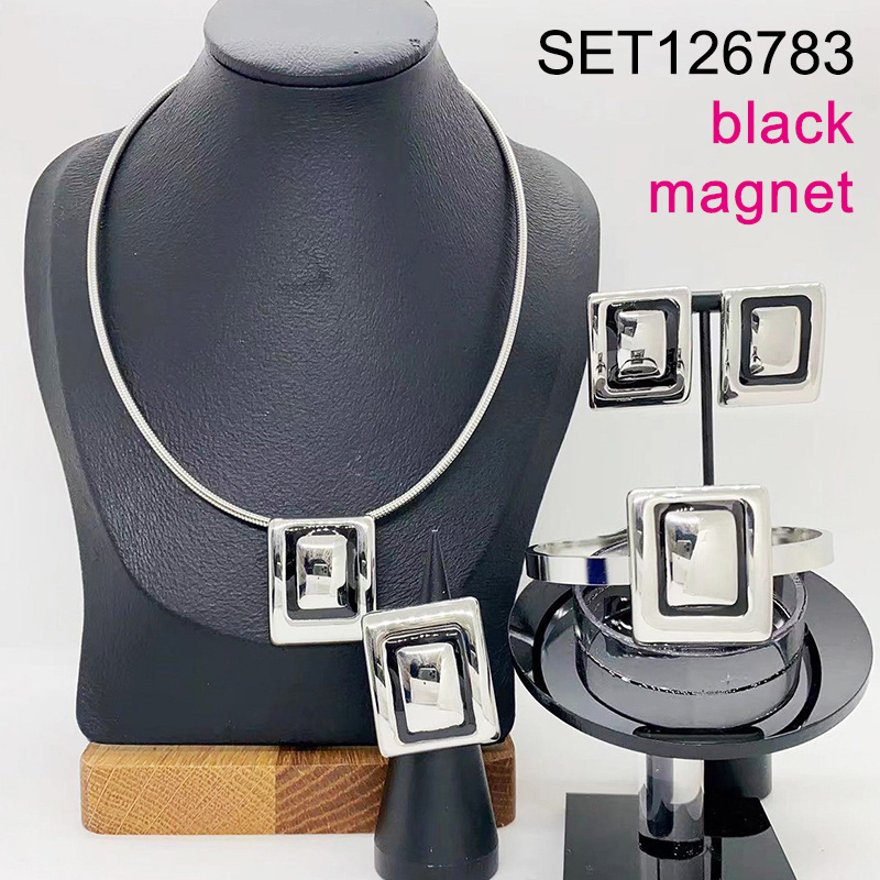 Level B Stainless Steel New Trendy Women Jewelry Black Rectangle Steel color Magnet buckle 4pcs SET
