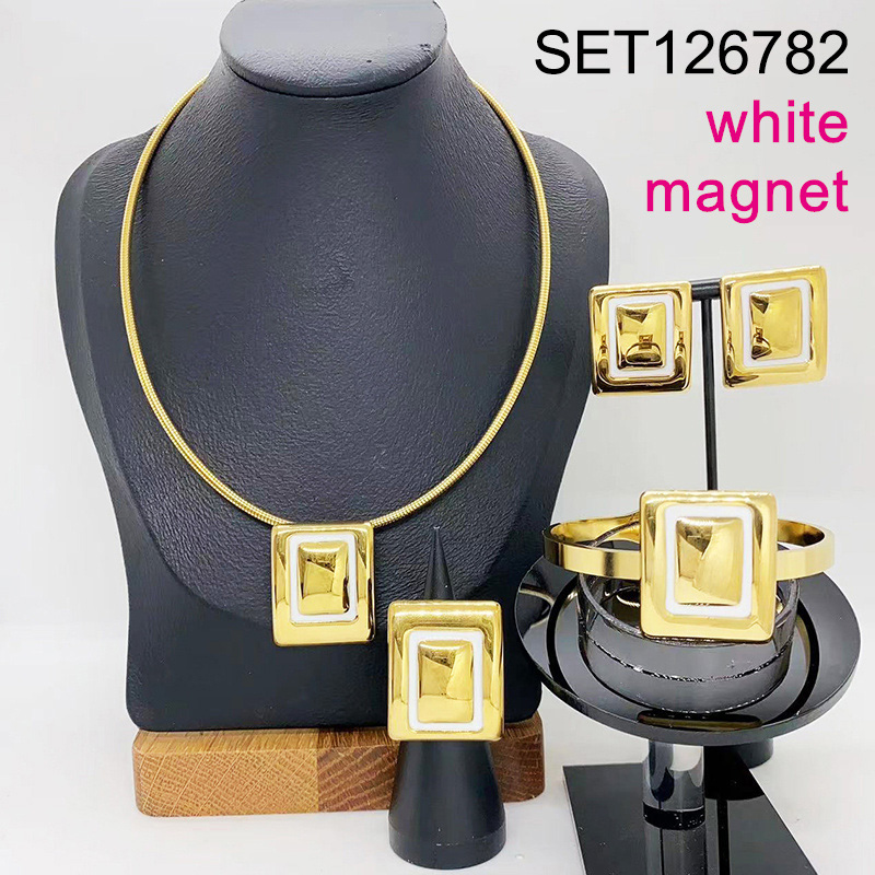Level B Stainless Steel New Trendy Women Jewelry White Rectangle Golden Magnet buckle 4pcs SET