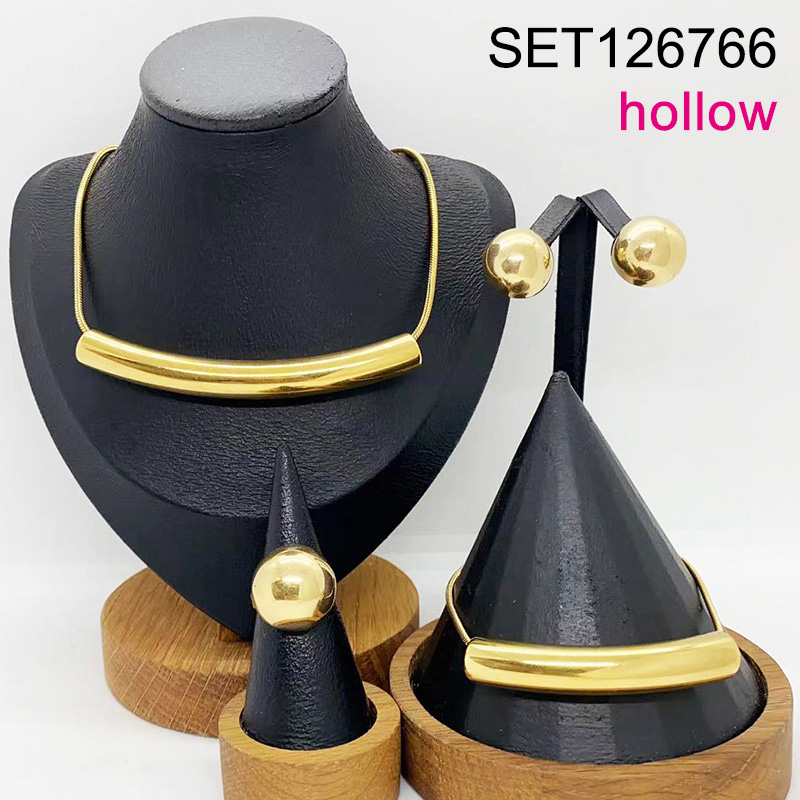 Level B Stainless Steel New Trendy Women Jewelry Hollow Round Golden 4pcs SET