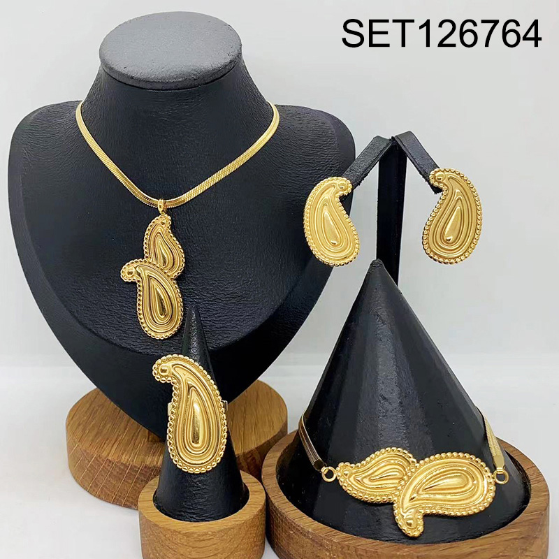 Level B Stainless Steel New Trendy Women Jewelry Water Drip Golden 4pcs SET