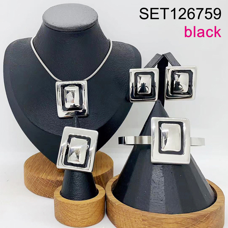 Home > Level B Stainless Steel New Trendy Women Jewelry Black Rectangle Steel color 4pcs SET