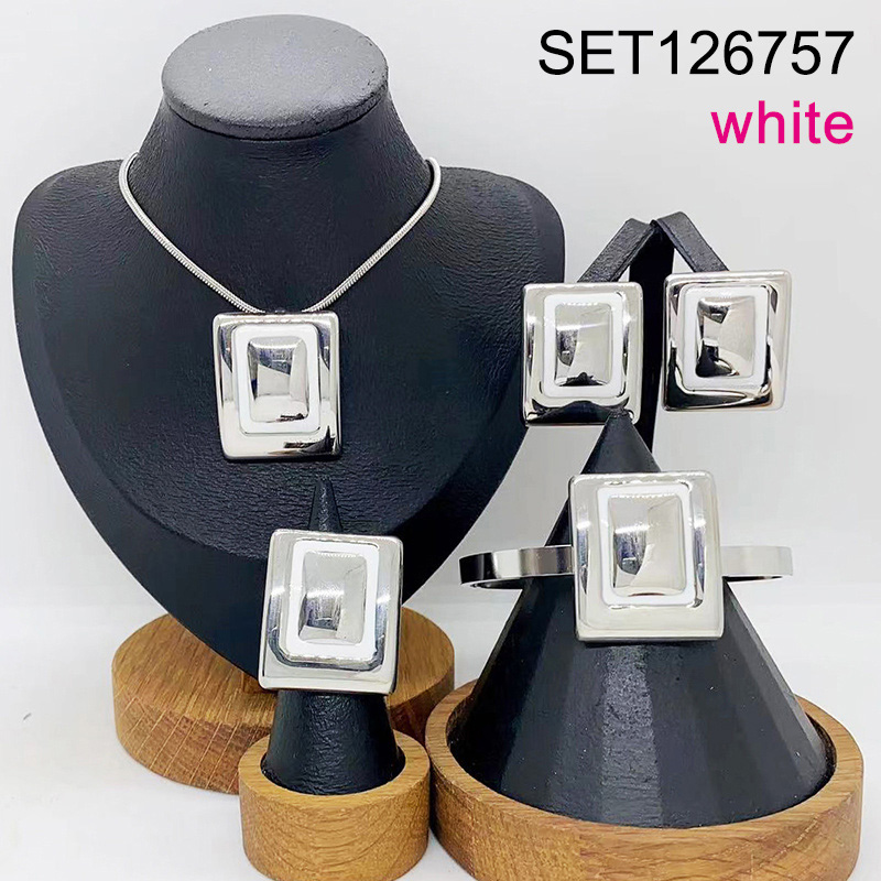Home > Level B Stainless Steel New Trendy Women Jewelry White Rectangle Steel color 4pcs SET