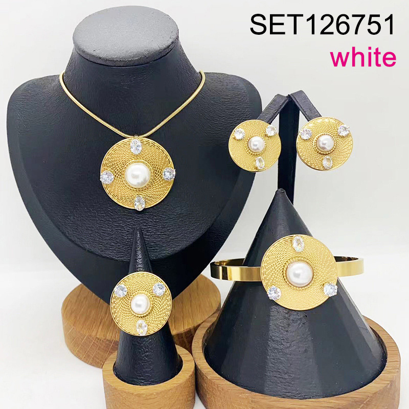 Level B Stainless Steel New Trendy Women Jewelry Pearl Style/White Plastic Beads Round Golden 4pcs SET