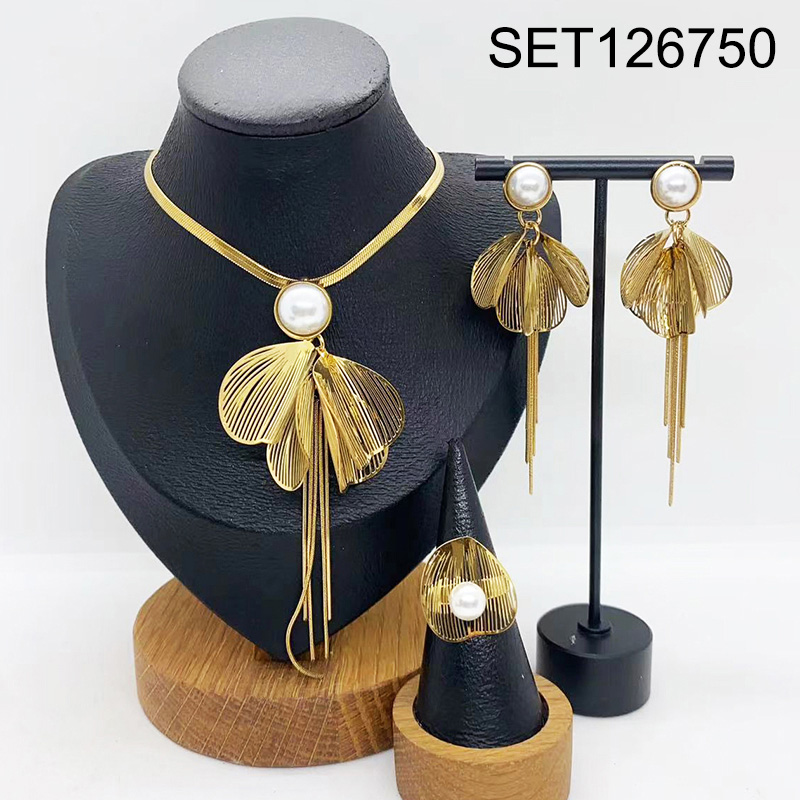 Level B Stainless Steel New Trendy Women Jewelry Pearl Style/Plastic Beads Golden 3pcs SET