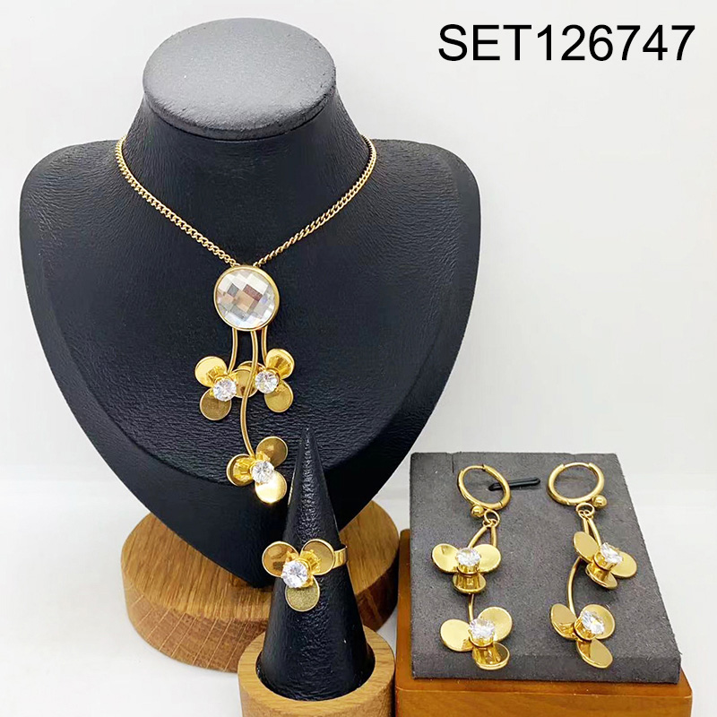 Level B Stainless Steel New Trendy Women Jewelry Flower Golden 3pcs SET