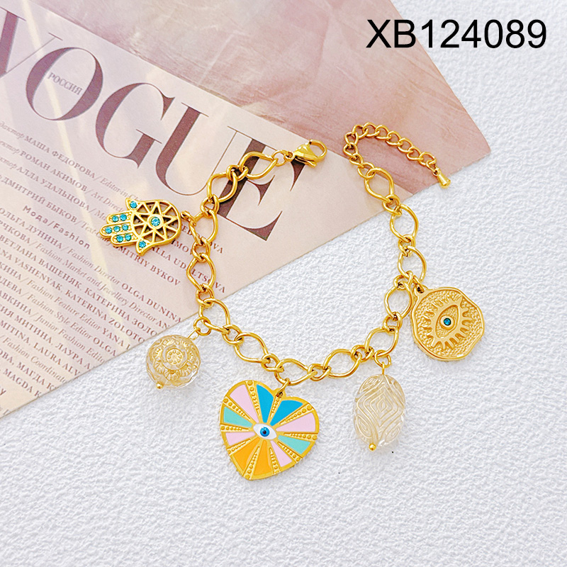 Level B Stainless Steel New Trendy Women Jewelry Heart Hand Eye Golden Valentine's Day Bracelet