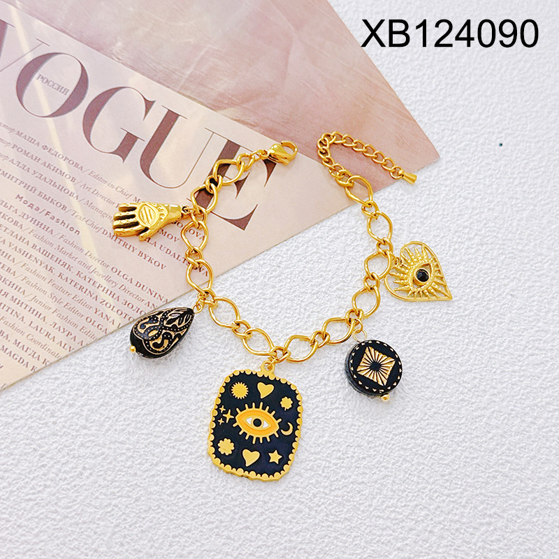 Level B Stainless Steel New Trendy Women Jewelry Drip Oil/Enamel Eye Golden Bracelet