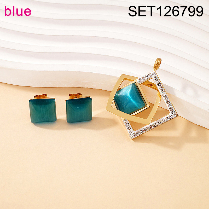 Home > Level B Stainless Steel New Trendy Women Jewelry Blue Opal Square Golden SET